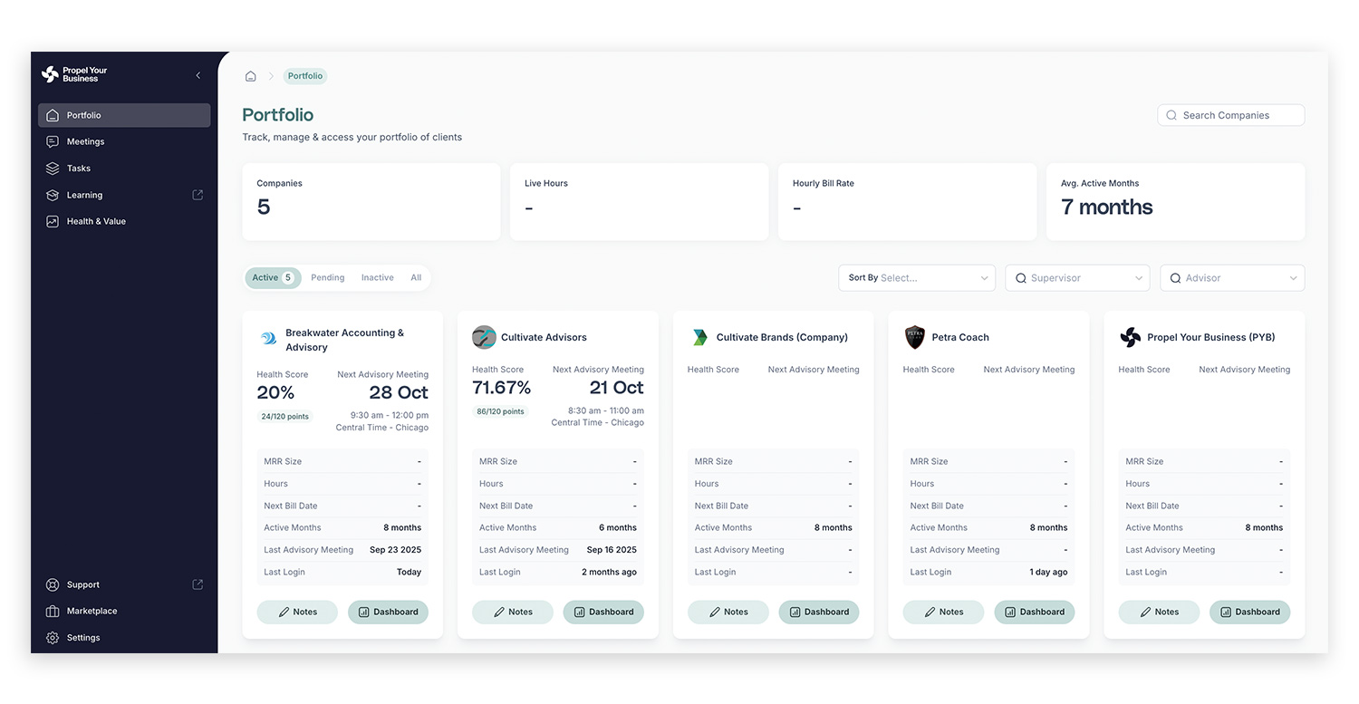Whether you’re scaling your own businesses or helping clients grow, Propel gives you the infrastructure to operate smarter and grow value faster.