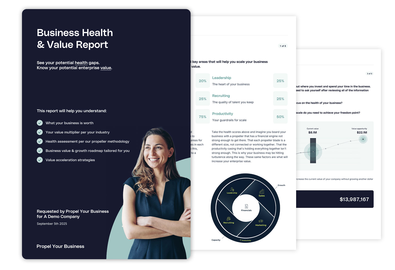 The first step to growing enterprise value is clarity. Propel’s Business Health & Value Assessment provides instant, unlimited insights to measure, track, and accelerate growth. In under 15 minutes, you’ll know exactly where a business stands and what levers to pull to unlock its potential.